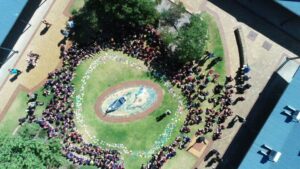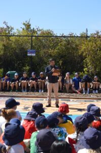 Yesterday the school community from Pre-primary to Year 6 created a “Temporary Art Installation” around the boat. The artwork was inspired by the book, “Only One You” by Linda Kranz. Each student had made and painted their own, unique, clay fish in art, with Mrs Bux. The fish were then arranged around the boat to create a “school” of fish, swimming around the boat together, highlighting that we are all the same- but different… and- we all belong!