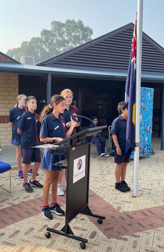 Our ANZAC Day ceremony was held for our students and very competently conducted by our Student Representatives. The choir performed a beautiful medley of songs which were sung during the dark times of World War 1. Mrs Cleak OAM addressed the students and talked to them about the history behind the Last Post and the Rouse, and the Ode. Students participated respectfully and wreaths were laid by representatives from each cluster.