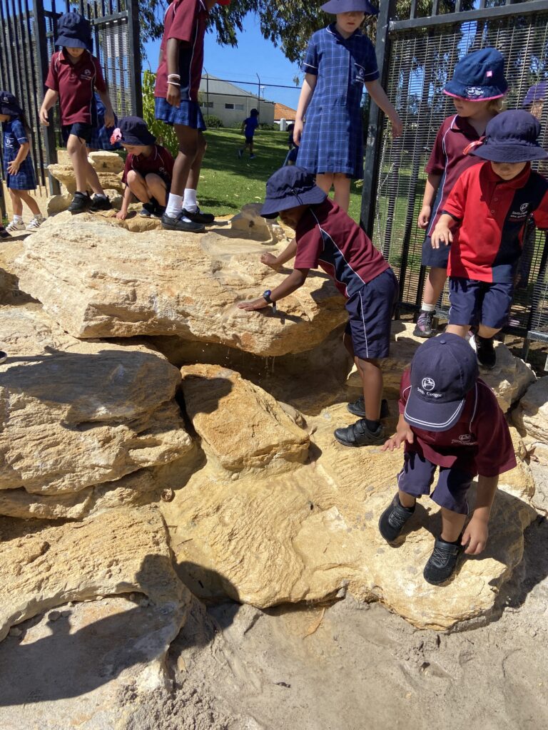 Children are loving their new Nature Playground. They are very excited about being able to clamber up the rocks, dabble in the water and balance on the logs. The children are also making better use of the lovely grass hill behind the playground.